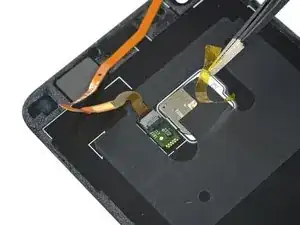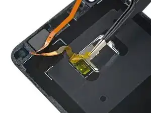 Используя пинцет, снимите жёлкую защитную наклейку с разъёма датчика отпечатка пальца.