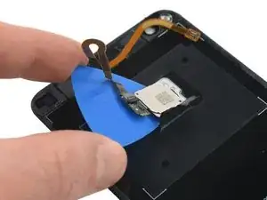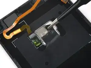Используйте лопатку, чтобы поддеть и отсоединить кабель датчика отпечатка пальца.