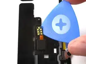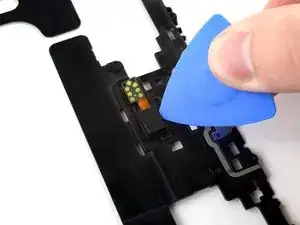 Подденьте медиатором, чтобы отделить датчик отпечатка пальца от держателя рамки.