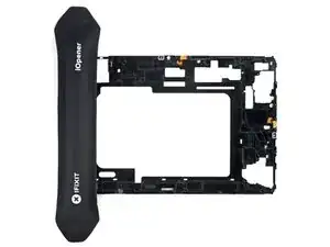 На этом этапе периметр экрана должен отделиться от рамки. Если по краям экрана всё ещё есть сопротивление, используйте медиатор, чтобы снова прорезать клей.