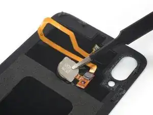 С помощью пинцета снимите узел датчика отпечатка пальца.