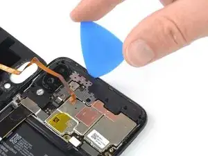 Используйте плоский конец лопатки, чтобы приподнять и отключить гибкий кабель датчика отпечатка пальца.
