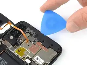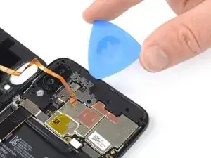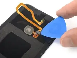Используйте медиатор для поддевания и приподнимания датчика отпечатка пальца.
