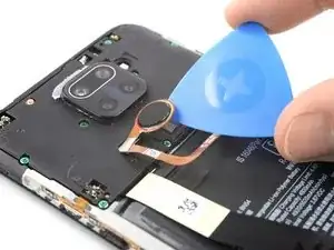 Датчик отпечатка должен отделиться от задней крышки в ходе этой процедуры. Если клей слишком сильный, можно повторно приложить разогретый iOpener к месту датчика на одну-две минуты, чтобы дополнительно ослабить клей.