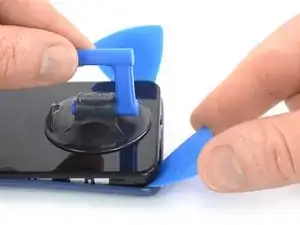 Поднимите сборку экрана и корпуса с помощью присоски, чтобы создать небольшой зазор между сборкой и задней крышкой.
