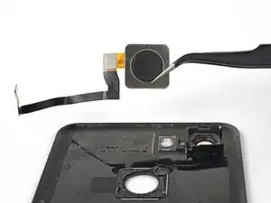Нагрейте iOpener и приложите его к обратной стороне датчика отпечатков на одну минуту, чтобы размягчить клей, удерживающий его на месте.