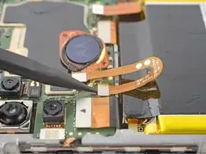 Хрупкий кабель крепит датчик отпечатков к плате. Будьте очень осторожны на этом шаге, чтобы не повредить кабель.