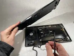 Вставьте пластиковую лопатку между задней крышкой и крышкой датчика.