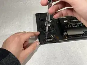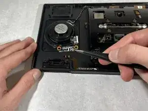 Удалите два винта длиной 1,2 мм, удерживающие датчик телефона, с помощью отвертки Phillips #0.