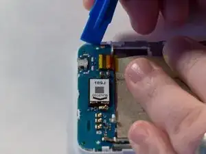 Поместите пластиковый инструмент для вскрытия сверху на верхнюю плату логики. Прилагайте равномерное и мягкое усилие, чтобы снять плату с остальной части устройства.