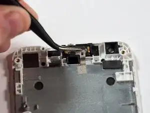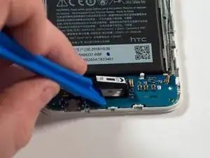 Снимите антенный разъём с нижней платы логики с помощью пинцета. Захватите основание металлического разъёма и потяните вверх, к головке разъёма.