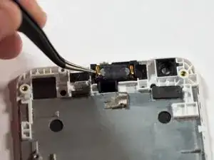 Аккуратно надавите пинцетом, чтобы отжать динамик, затем поднимите и извлеките его из устройства.