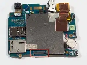 Снимите ленту, закрывающую разъём, который фиксирует шлейф к нижней плате логики.