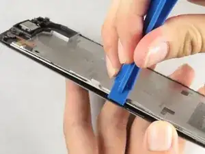 Проведите лопатку вдоль боковой стороны телефона, пока не дойдёте до защёлки, фиксирующей дисплей к задней крышке.