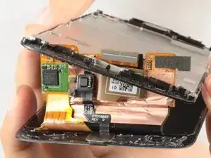 Аккуратно оттяните металлическую пластину от дигитайзера в лёгком противоходном (против часовой стрелки) направлении, чтобы не повредить монтажную пластину проводки.