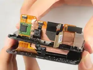На этом этапе при обратной сборке после подключения дисплея включите телефон и убедитесь, что дисплей работает корректно. Если всё в порядке, выключите телефон и продолжайте сборку.