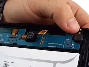Используйте лопатку, чтобы отключить сенсорный экран от материнской платы. Они соединены в верхней части материнской платы, где расположена желтая резиновая часть сенсорного экрана.