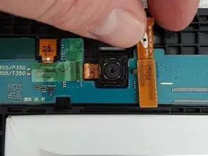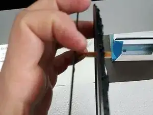 Время установить новый дигитайзер. Установите дигитайзер и планшет в вертикальное положение, пропустите шлейф дигитайзера через отверстие на заднюю сторону и подключите.