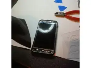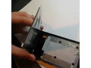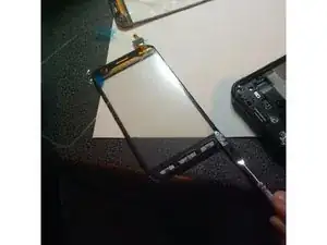 используйте лопатку и «подденьте» или «засуньте» лопатку под дигитайзер, следите за ЖК‑дисплеем. Как только вы попадёте под дигитайзер, используйте кредитную карту или пластиковую карту, чтобы проскользить между клеем и дигитайзером. Если клей всё ещё слишком жёсткий — снова прогрейте.