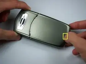 Возможно, потребуется приложить значительное усилие к фиксатору в нижней части телефона, чтобы успешно выполнить этот шаг.