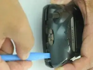 Используйте лопатку или пластиковый инструмент для открытия iPod, чтобы отжать зажимы, удерживающие заднюю крышку. Приложите усилие под углом сорок пять градусов, чтобы освободить зажимы.