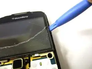 Вставьте инструмент в указанное место и используйте его, чтобы отщёлкнуть две боковые части экрана от корпуса.