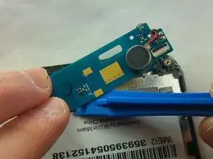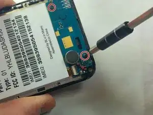 Открутите винты длиной 2,5 мм с печатной платы, держащие динамик внизу телефона.