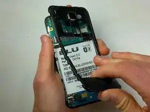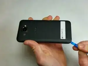 Выньте кнопку аккумулятора из задней части телефона, используя пластиковый инструмент для открытия.