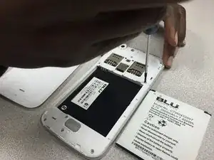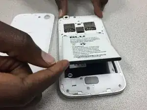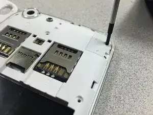Снимите заднюю крышку, поддев её у выемки в нижней части телефона. Используйте ноготь, чтобы приподнять крышку.