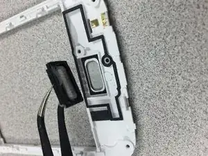 С помощью пинцета захватите модуль динамика с задней панели и аккуратно снимите его с рамки. (для фиксации используется двусторонний скотч)