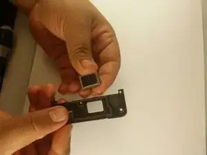 Вставьте пластиковую подложку держателя динамика обратно в телефон.
