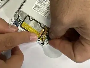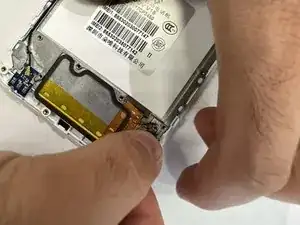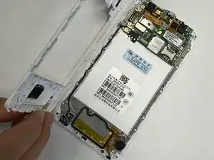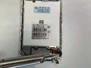 Отключите батарею: после снятия задней крышки батарея будет видна. Используйте лопатку iFixit, чтобы извлечь батарею. Поместите лопатку в верхней части батареи и оттяните её назад или просто извлеките батарею рукой.