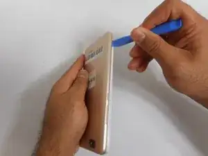 Используйте джимми, чтобы приоткрыть заднюю крышку телефона. Подденьте его под край задней крышки и осторожно ослабьте край. Крышка должна немного приоткрываться.