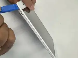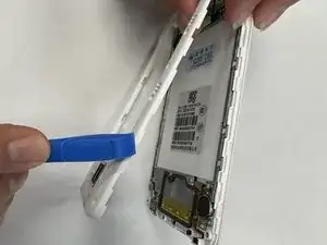 Используйте лопатку iFixit, чтобы провести по периметру задней крышки телефона, ослабляя её и облегчая снятие. Крышка должна легко отделяться от корпуса. Обязательно обойдите её по всему периметру.