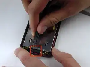 Используйте пластиковый инструмент для открытия, чтобы аккуратно отделить среднюю рамку от остальной части телефона.