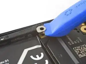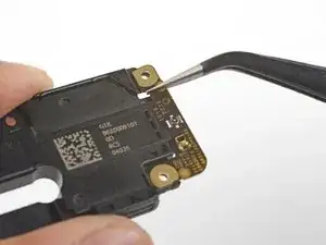 Выкрутите один винт T3 длиной 2,7 мм, крепящий дочернюю плату к рамке.