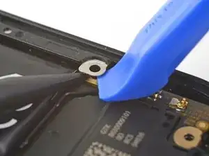 Воспользуйтесь кончиком лопатки, чтобы аккуратно поддеть датчик из посадочного гнезда на средней рамке. Датчик слегка приклеен к рамке.