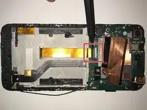 Чтобы получить доступ к верхнему динамику, сначала отсоедините оранжевый кабель от держателя пальцами.