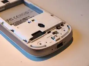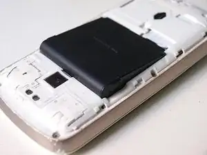 Откройте телефон, сняв заднюю крышку (крышку аккумуляторного отсека) и извлекая аккумулятор.