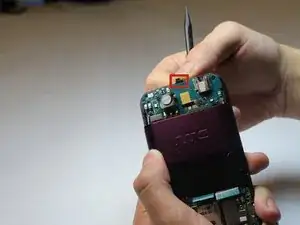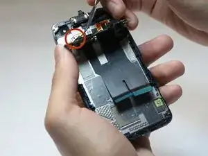 С помощью пинцета приподнимите вторичную плату от основания телефона.