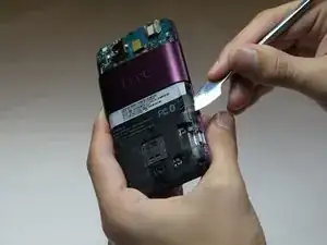 С помощью пластикового инструмента подденьте верхнюю пластиковую крышку снизу.