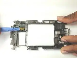 Осторожно отделите экран и корпус телефона от задней рамы, начиная снизу.