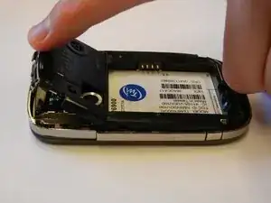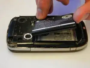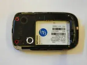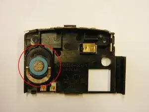 Снимите пластиковый корпус динамика над отсеком для аккумулятора.