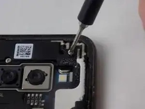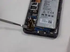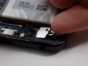 Подденьте и приподнимите сверху плату рядом с аккумулятором CMOS, чтобы снять верхнюю часть схемы с телефона.