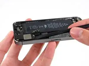Поднимите динамик и потяните его в сторону телефона, чтобы освободить этот штифт от сборки разъёма Lightning.
