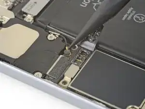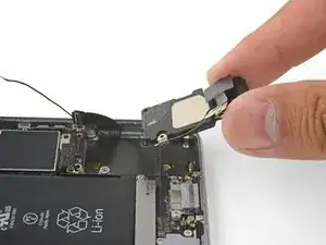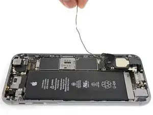 Если вы следуете этому руководству, чтобы заменить разъём Lightning, можно оставить антеннный кабель подключённым и пропустить этот и следующий шаги. Будьте очень осторожны, чтобы не растянуть деликатный антеннный кабель при перемещении громкоговорителя.