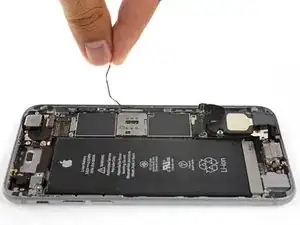 Аккуратно приподнимите антеннный кабель и освободите его от края телефона. Используйте острый наконечник лопатки, чтобы помочь приподнять кабель и освободить его из фиксаторов.