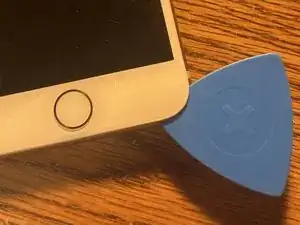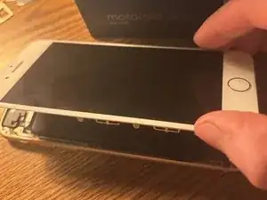 Вставьте Джимми в правую сторону телефона. Установка Джимми посередине может привести к трещинам в стекле и/или поломке кнопки «Домой». Кроме того, не вставляйте Джимми в левую сторону, так как это может повредить кабель кнопки «Домой». Используйте небольшую коробку для поддержания дисплея, как показано на третьем изображении.