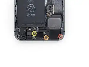 Снимите металлическую скобу разъема аккумулятора с iPhone.