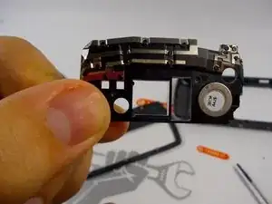 Держите недавно снятый черный корпус в руке и обратите внимание на серебряный круглый модуль, соединённый с корпусом.